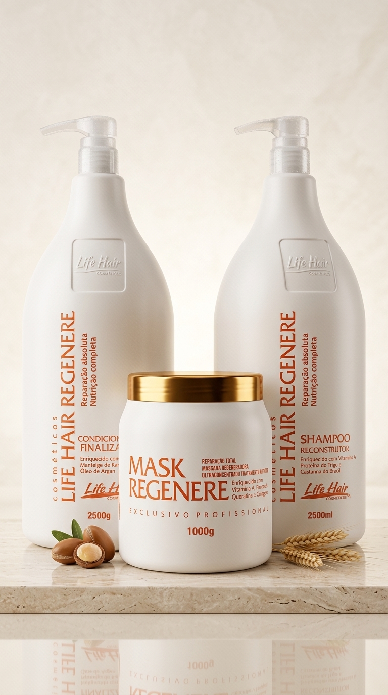 LIFE HAIR - KIT PROFISSIONAL - REGENERE - SHAMPOO DE 2,5 L + CONDICIONADOR DE 2,5 LITROS + MÁSCARA DE 1 KG